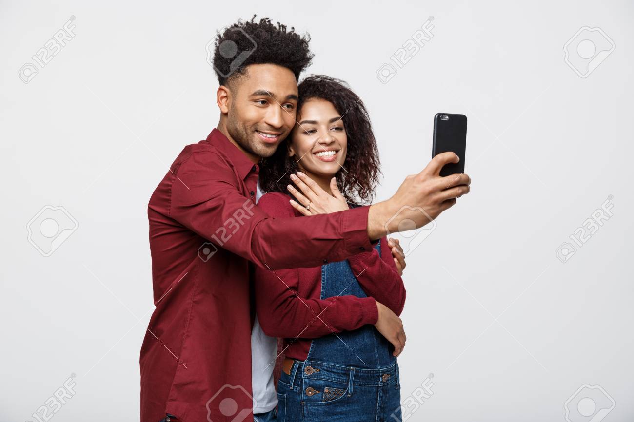 Young Attractive African American Couple Pose For Selfie Pose