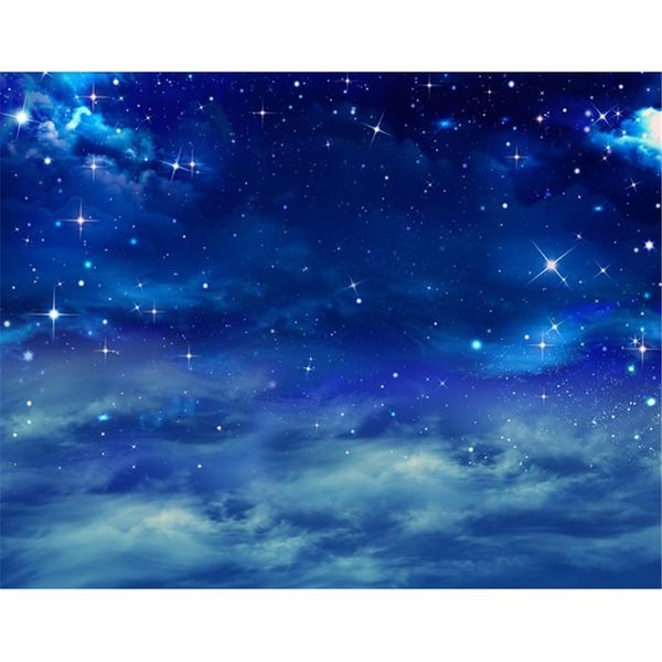 2019 Glitter Stars And Clouds Blue Night Sky Photography Backdrop