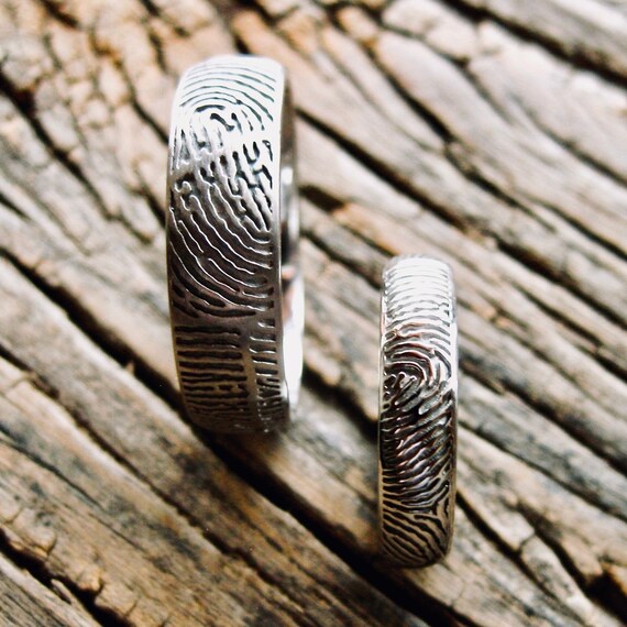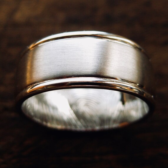 Palladium Finger Print Wedding Rings With Glossy And Matte Etsy