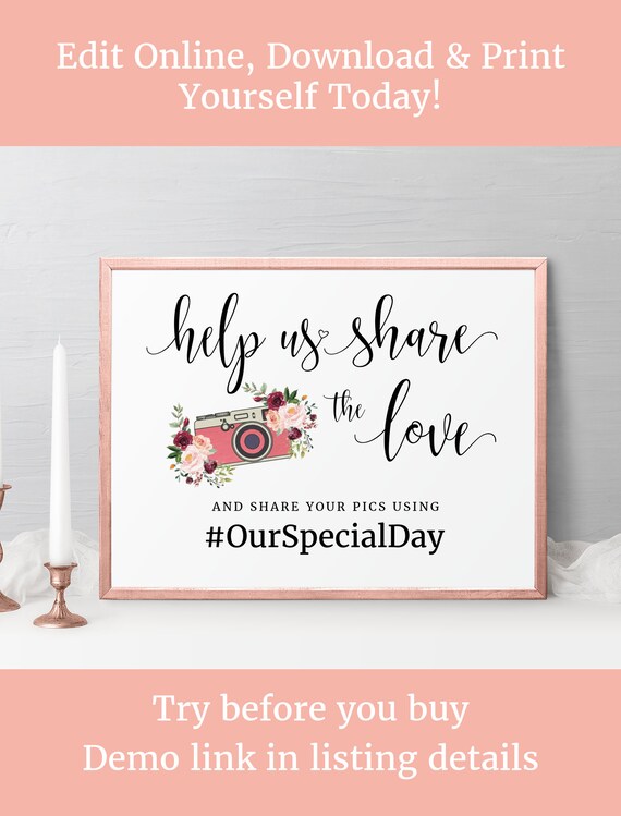 Wedding Hashtag Sign Share The Love Hashtag Sign Social Etsy