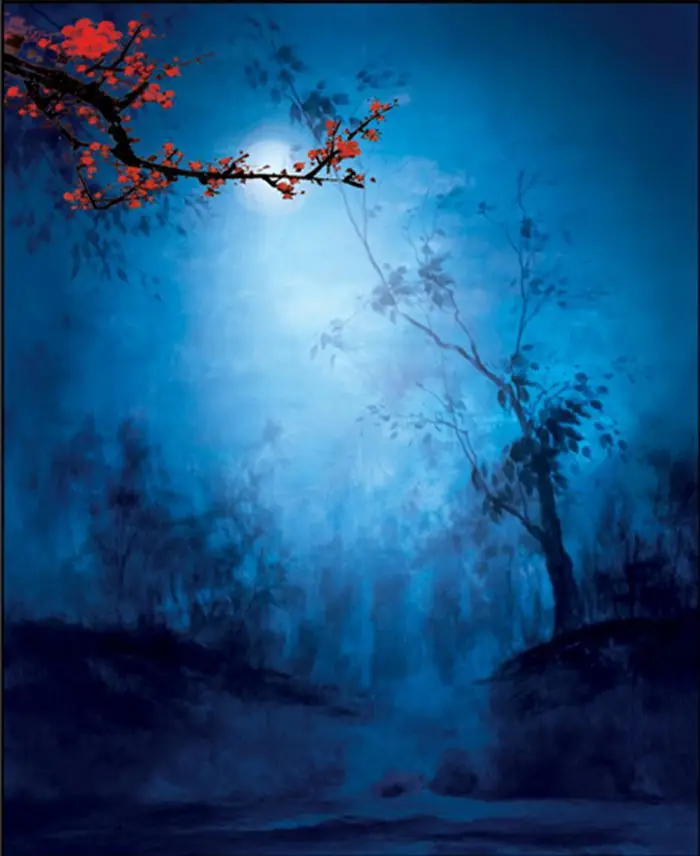 Plum Flower Painting Blue Background Printed Tree Vinyl 5x7ft