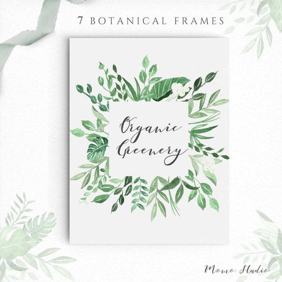 Watercolor Botanical Frames Greenery Leaf Frames Wedding Etsy