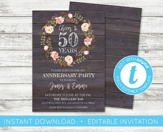 Edit Yourself Anniversary Invitation Editable Anniversary Etsy