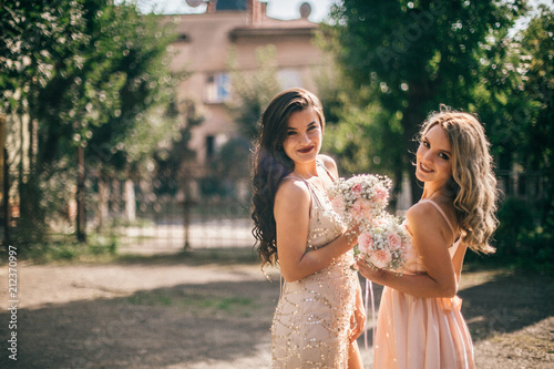 Beautiful Bridesmaids At The Wedding Lovely Dresses Grils With