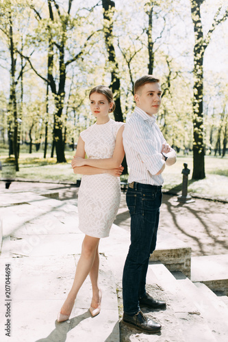 Beautiful Young Couple In The Park On A Sunny Day Loving And