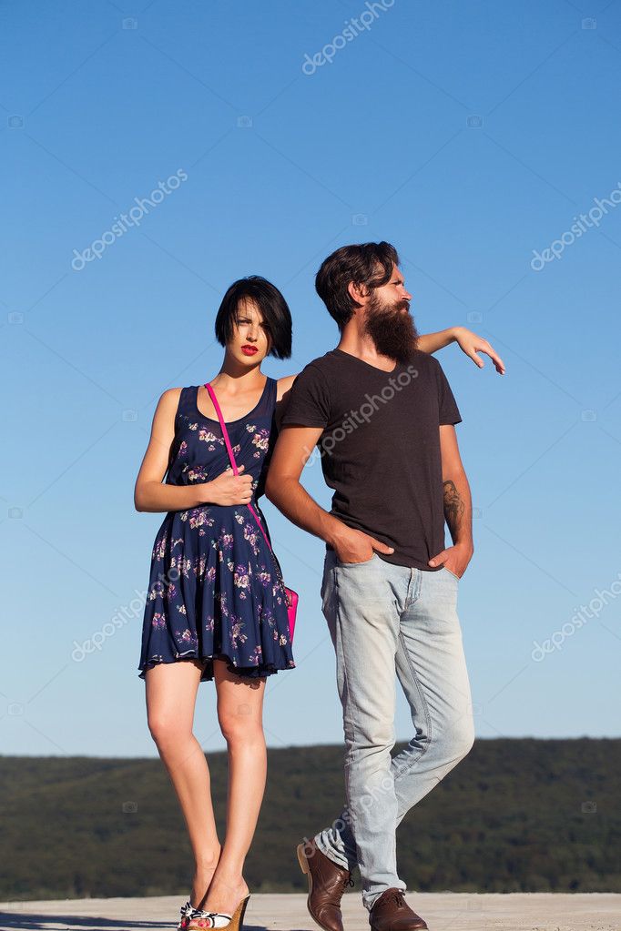 Hipsters Couple Posing At Amazing Beach Stock Photo