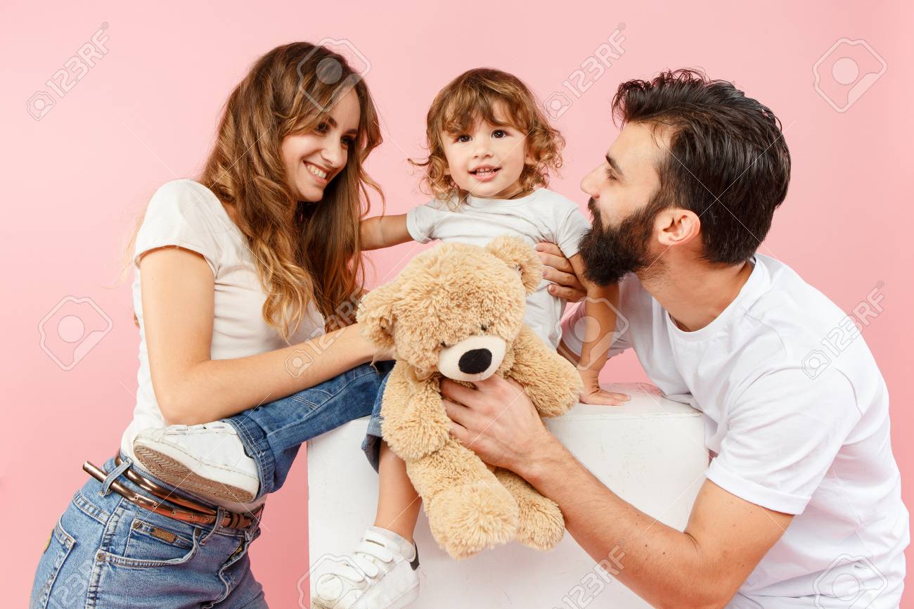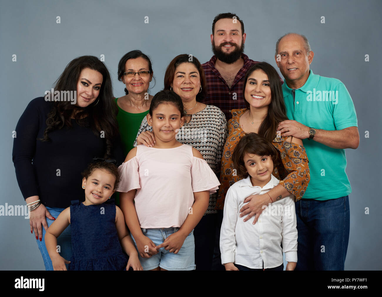 Big Family Portrait Isolated On Gray Studio Background Stock Photo