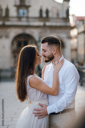 Young Wedding Couple Enjoying Romantic Moments Outdoors Close Up